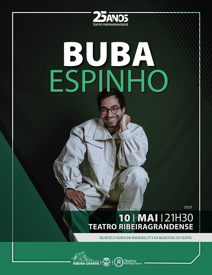 No próximo dia 10 de maio, às 21h30, o artista Buba Espinho subirá ao palco do Teatro Ribeiragrandense, num evento que pretende assinalar os 25 anos da reabertura daquela sala de espetáculos, após um longo período de inatividade.