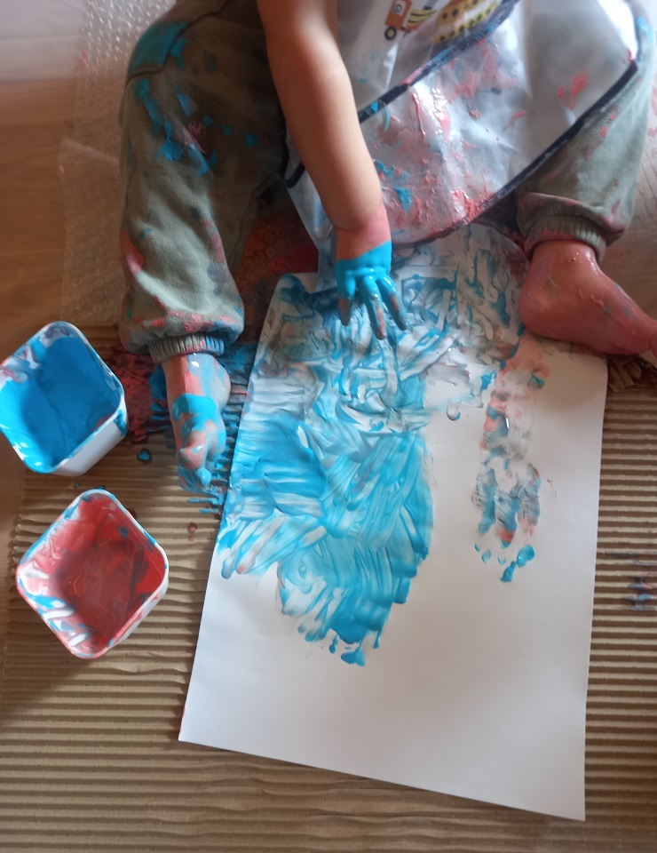 . Os pés podem também podem entrar na exploração, caso os pais se sintam confortáveis para tal; e neste caso é importante ter atenção à roupa que irão sujar. (não usar collants por exemplo)."