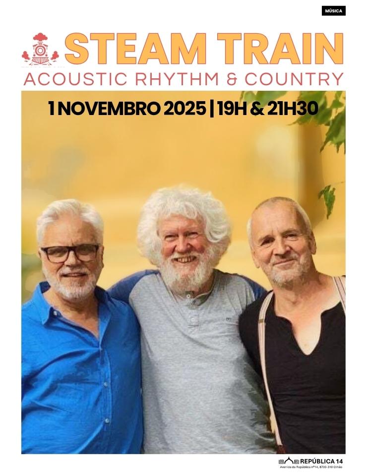Steam Train são um trio vocal acústico com uma abordagem original à música americana. A banda junta a energia do rock and roll (Dirk), as raízes do jazz (Fernando) e a alma da folk celta e do bluegrass (Mansel). Com instrumentos como percussão, bandolim, slide guitar, baixo, banjo e guitarras, o grupo apresenta o seu estilo único – a que chamam Rhythm & Country Music.