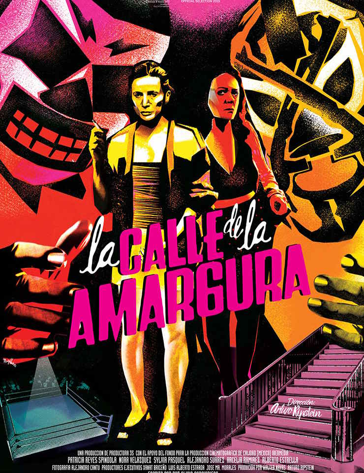 Ao amanhecer, duas prostitutas de certa idade regressam aos seus apertados aposentos. Uma tem problemas em casa com a filha adolescente e o marido que se veste de mulher; a outra lida com a solidão. Mas nessa noite têm um compromisso: celebrar a vitória de dois wrestlers anões. No hotel, drogam-nos para lhes roubar os brincos, mas acabam por matá-los acidentalmente. Assustadas e confusas, decidem esconder-se da polícia e fugir juntas. La calle de la amargura é inspirado numa história verídica.