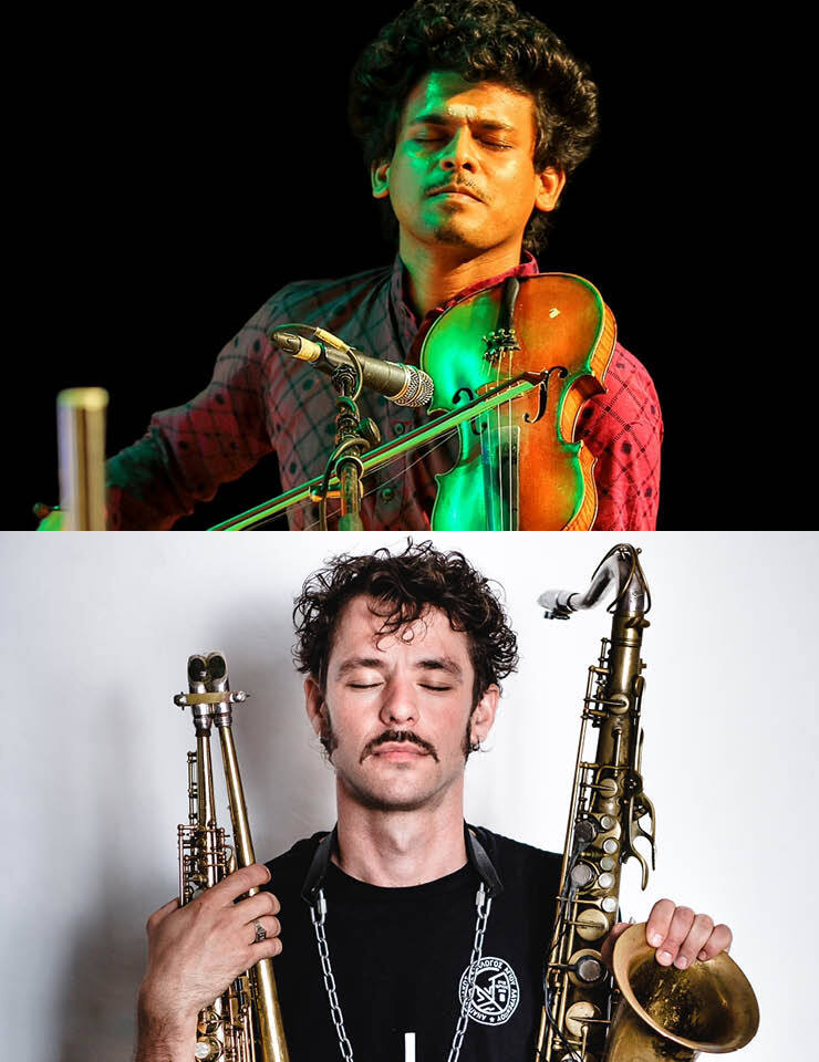 O violinista carnático Sumanth Manjunath, de Karnataka, e o saxofonista berlinense Julius Gabriel, conhecido pela sua abordagem experimental e improvisada, criam um diálogo musical distintivo que entrelaça ragas da música clássica indiana, jazz e música drone. Os dois encontraram-se pela primeira vez numa conferência musical em Mysuru, em 2022, e começaram a tocar juntos durante uma digressão em Portugal no ano seguinte. A sua colaboração nasceu de uma curiosidade partilhada sobre como as suas diferentes linguagens musicais poderiam interagir em tempo real. Na tradição do jugalbandi indiano — um diálogo entre iguais — o duo move-se fluentemente entre estruturas compostas e improvisação livre. — Lovers & Lollypops