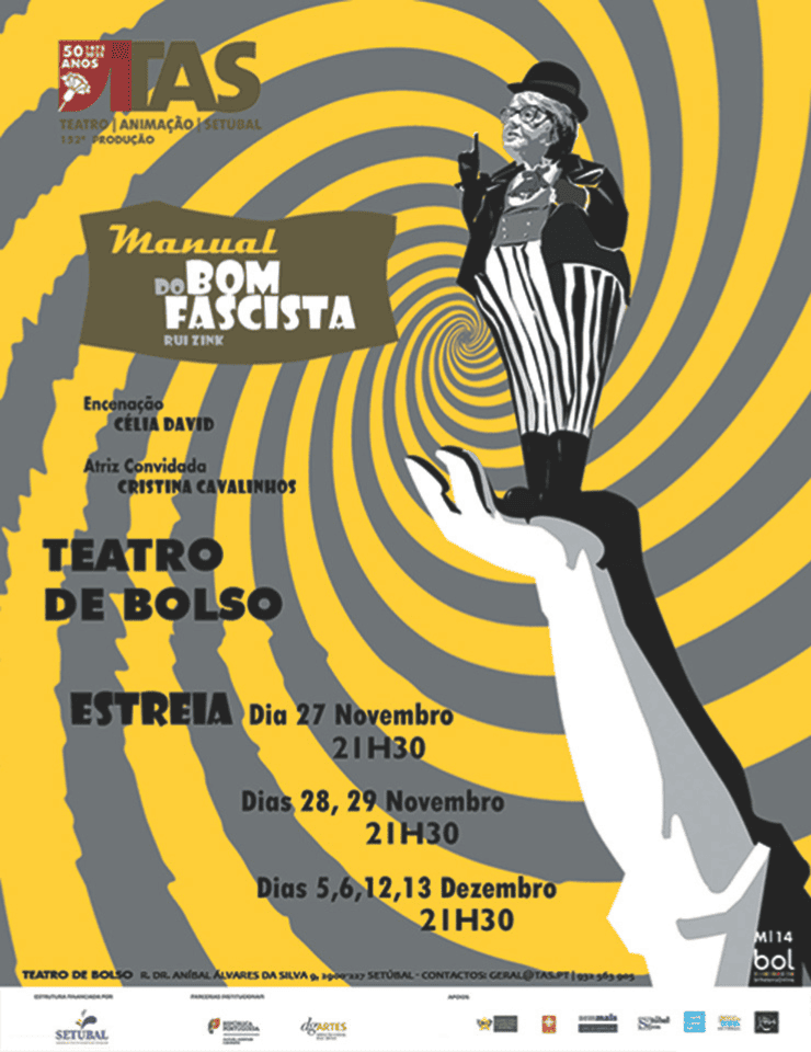 "Manual do Bom Fascista" de Rui Zink, um compêndio de 100 lições para aprendizes de "bons fascistas", título e conteúdo, carregados de forte ironia e sarcasmo. No entanto, um alerta para a ascensão de ideologias radicais e crescentes manifestações de extrema-direita. A falta de memória dos povos e suas idiossincrasias e arbitrariedades, justificando abusos de poder, intolerâncias, autoritarismo, repressão, violência e medo. Numa abordagem trágico/cómica assente num humor fino e requintado, a obra toma forma teatral com a supervisão do autor, relativa à adaptação e dramaturgia e, através de um “fascistómetro”, será possível identificar o fascista que há em cada um de nós. "Estará o fascismo entre nós ou dentro de nós?" Venha assistir ao espetáculo, fazer o teste e tirar a prova dos nove.