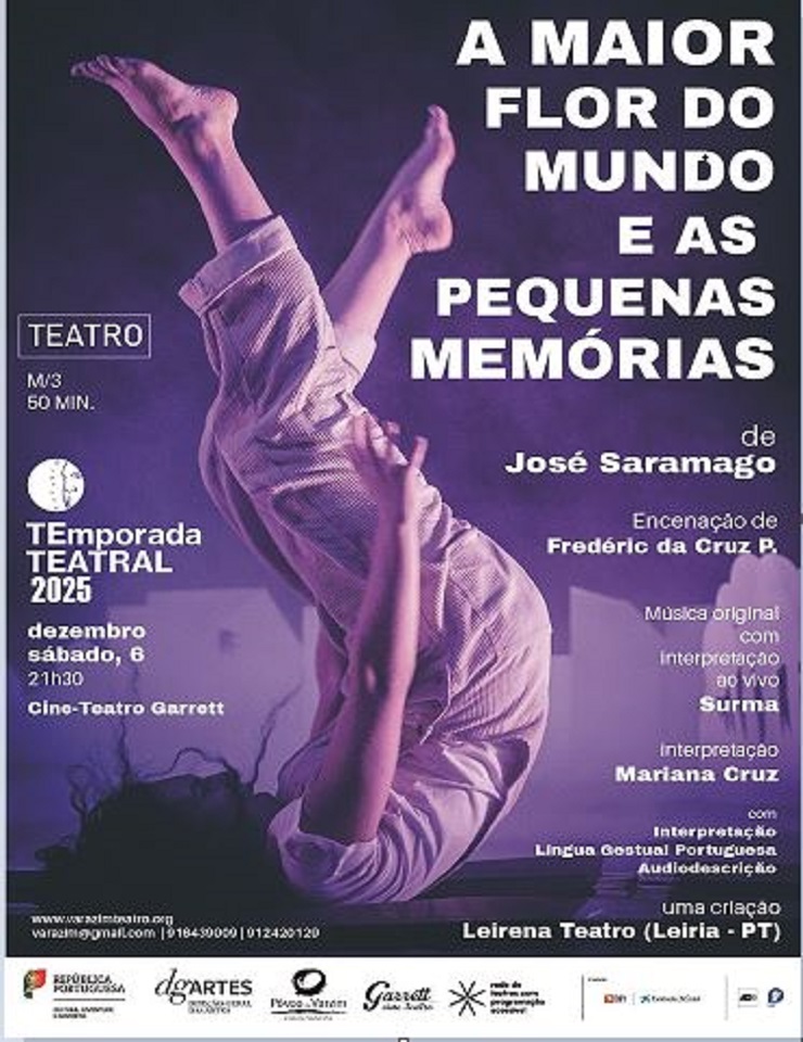O espetáculo "A Maior Flor do Mundo e As Pequenas Memórias" mistura as aventuras de um menino com as lembranças da infância do próprio autor, José Saramago. Nessa narrativa, o herói parte numa jornada para além da sua aldeia, habitada pela sua família, em busca de algo maior. A peça utiliza uma estética inspirada em livros pop-up, criando um ambiente mágico e cenográfico que combina movimento, voz e o som ao vivo, em colaboração com a artista Surma. A dramaturgia entrelaça a história do menino em "A Maior Flor do Mundo" com as memórias de Saramago, exploradas em "As Pequenas Memórias", levando o público a uma viagem poética e visual sobre a infância, o tempo e as descobertas.