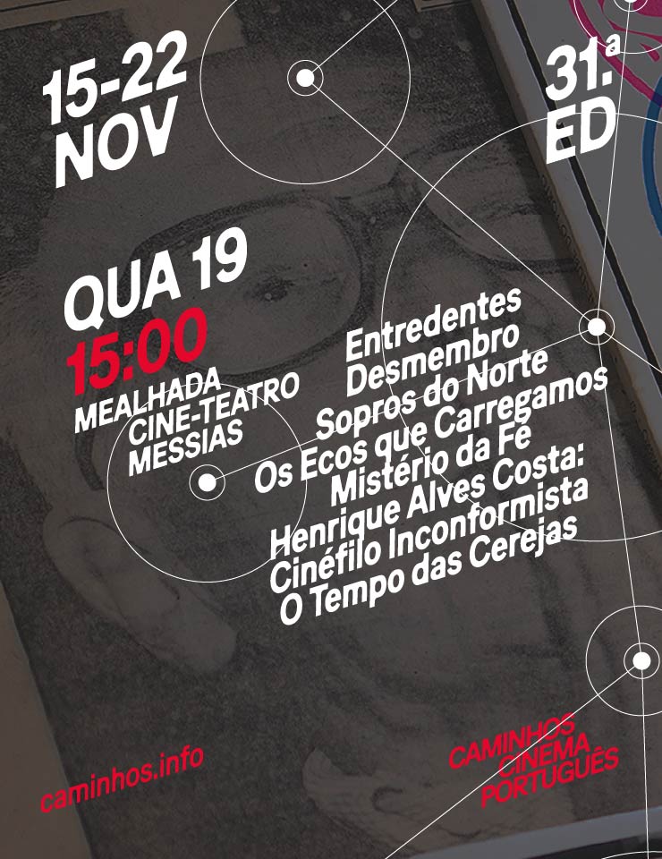O Festival Caminhos do Cinema Português regressa ao Cine-Teatro Messias, nos dias 19 e 20 de novembro, com sessões pensadas para diferentes públicos: desde os mais novos ao ensino secundário e profissional, culminando em exibições abertas ao público geral em horário noturno.
