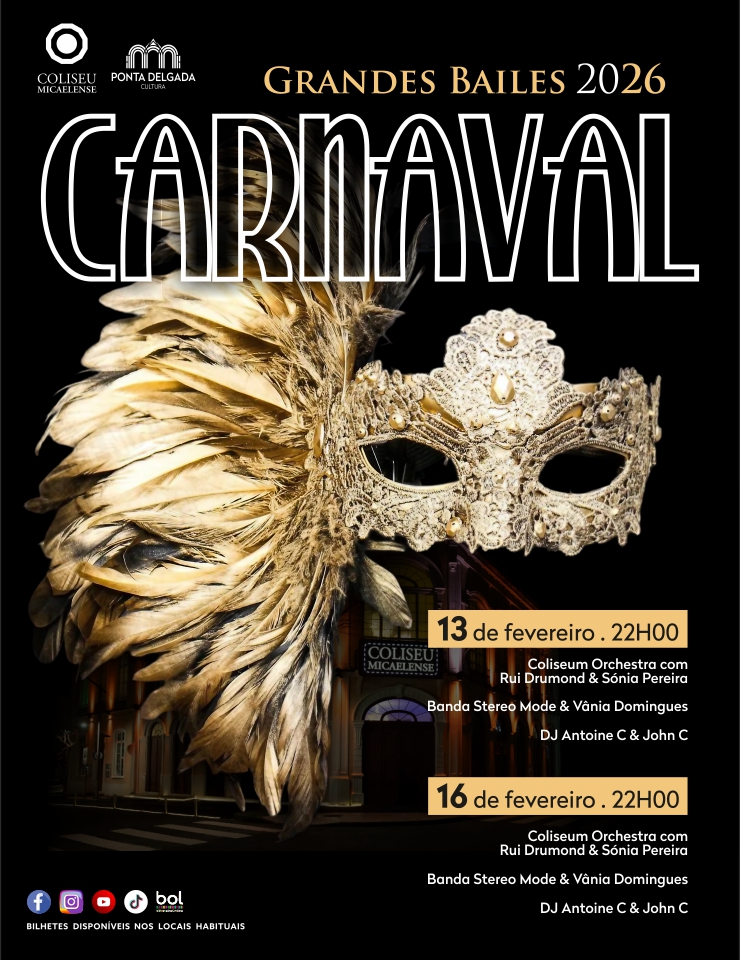 A compra de bilhete não dispensa a leitura do Regulamento Oficial, disponível aqui: https://coliseumicaelense.pt/wp-content/uploads/2025/11/Regulamento-Carnaval-2026-assinado.pdf