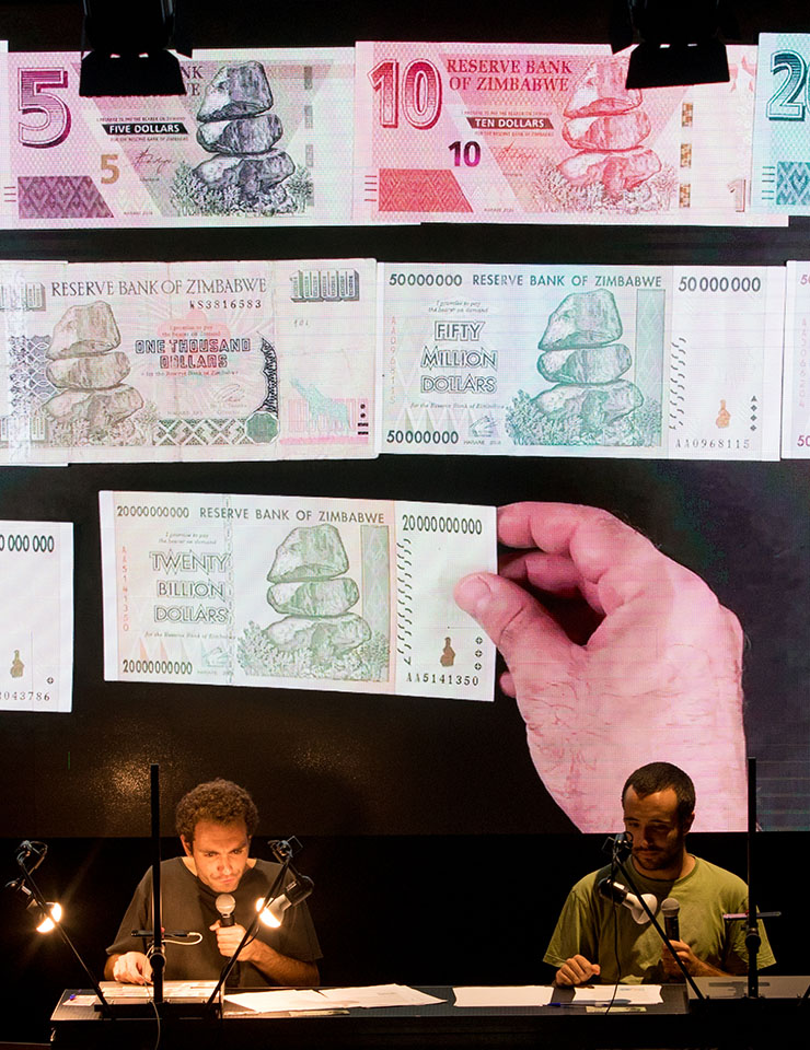 As imagens são bidimensionais e costumam ter um modo de existir que é permanente; estão ali, paradas. O teatro não. E o teatro pode transformar-se para que sejam essas imagens colecionáveis os seus protagonistas. Foi isso que fizemos em 2005, em philatélie, com uma coleção de selos, e é isso que vamos voltar a fazer agora com notas. Vamos manuseá-las sobre uma mesa, analisá-las, combiná-las de maneiras diferentes e mostrá-las em tempo real e ampliadas para grande formato, desta vez cheias de brilho, num écran led. A história do mundo em pequenos pedaços de papel.