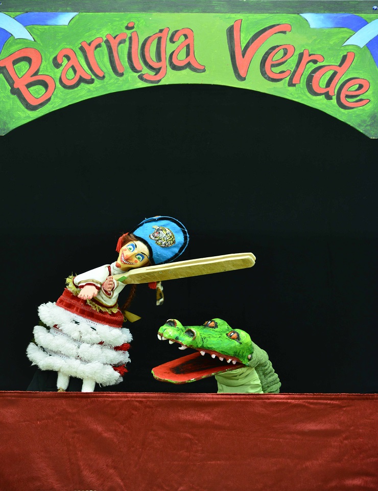 “Dona Barriga Verde” é uma menina, cantora e pandeireta que, munida de engenho, desafia as dificuldades do quotidiano enfrentando situações sem filtros, superando o medo e a injustiça, defendendo a sua integridade e amor próprio contra os monstros, o amor, a morte e até o próprio diabo. Dirigido a crianças, jovens, adultos e idosos que queiram desfrutar dos bonecos e conhecer a rica tradição da cachaporra peninsular, chega esta nova versão da personagem galega “Barriga Verde”. Com uma protagonista feminina pela primeira vez nas tradições europeias, Dona Barriga Verde traz novas perspetivas sobre os papéis de género e os estereótipos desta tradição, representa uma atualização das formas e métodos do teatro de marionetas popular, reinterpretando o património imaterial desta técnica de teatro de marionetas que nos ajudou a expurgar injustiças através do riso durante séculos. “Dona Barriga Verde” integra elementos da Barriga Verde galega, criada por José Silvent no início do século XX, com referências a outras tradições europeias de marionetas, como o português Dom Roberto, o italiano Pulcinella ou o inglês Punch&Judy, entre outros.