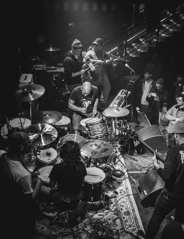 Não existe um princípio nem um fim, apenas o eterno retorno. Vai daí, podemos até projectar o símbolo do Ouroboros na música de Water Damage, com a noção de que a trajectória circular traz com ela a mudança de pele da serpente. Como se a eternidade fosse também um acto de renovação na repetição. Pedra basilar do pensamento minimalista que é aqui sublimado com toda a clareza e o reconhecimento de que 'In C' de Terry Riley minou muita fundação do rock - versão de Acid Mothers Temple terá sido um acordar para o êxtase electrificado da mesma - e se perpetua no terceiro álbum - In E - do colectivo texano. Passadas seis décadas, e com a canonização de Velvet Underground, 'Outside the Dream Syndicate', as viagens do krautrock, as guitarras de Rhys Chatham e Glenn Branca ou a obra de David Maranha por entre outros delírios, o rock no seu sentido mais expansivo continua a trazer-nos exemplos de vitalidade na repetição e no volume, como estes Water Damage. Partindo de um arsenal de guitarras, baixos, baterias e violino, a banda assenta as suas longas peças num groove ininterrupto que vai sendo abalroado por ondas de distorção, linhas de baixo pulsantes e rasgos de violino que, sem destino aparente, atiça um fogo sempiterno, tangente ao abismo de algum noise rock - vincado na cover de 'Ladybird' de Shit & Shine - e que sem ceder à riffagem saca todo o balanço implícito nesse arquétipo do género. E o headbanging brando da hipnose. Para sempre.