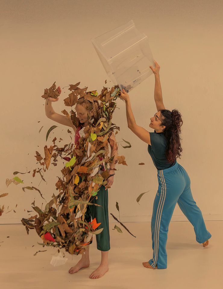 O espaço da performance transforma-se num laboratório vivo que explora a ideia de que as quedas não representam o fim, mas sim o que está por vir — para onde se vai e porquê. O movimento e o som fundem-se num diálogo vivo entre a folha e o corpo. As folhas farfalham, crescem, voam e dançam, estimulando a imaginação dos espectadores.