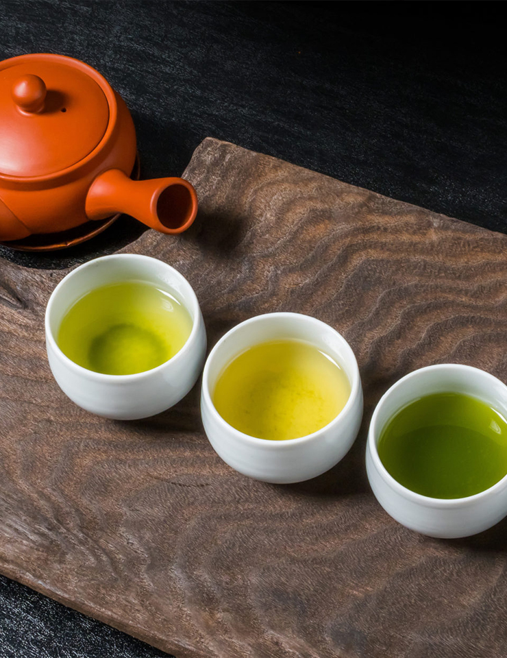 O chá verde japonês distingue-se pelo processo de vaporização das folhas, que preserva a cor verde e os antioxidantes, criando sabores frescos e delicados.