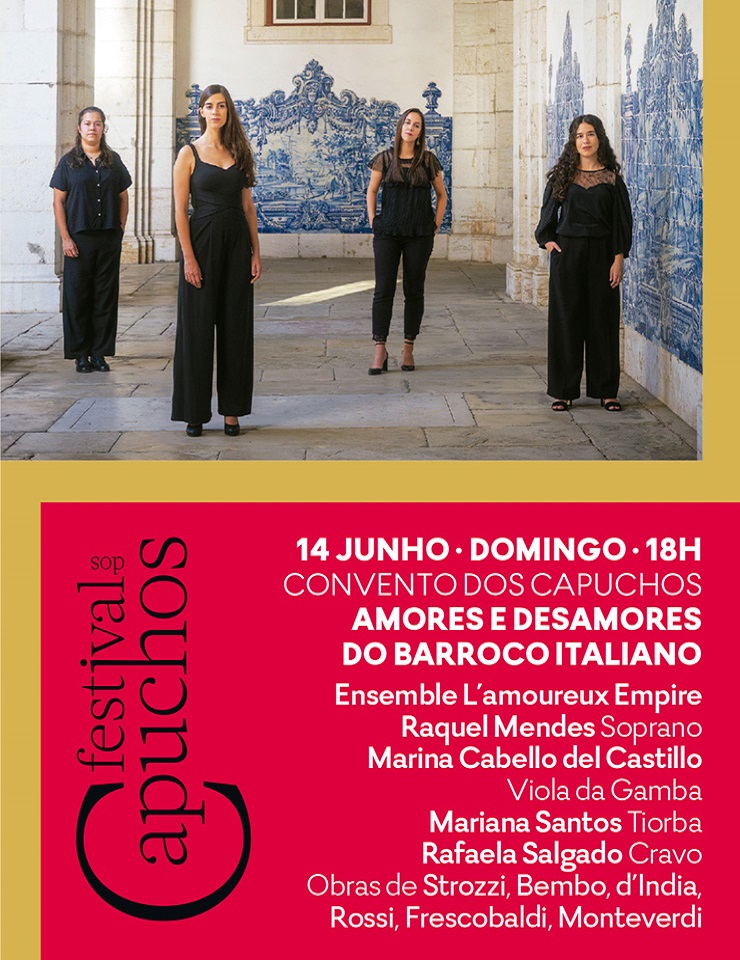 Fundado em 2024 pela soprano Raquel Mendes e pela cravista Rafaela Salgado, o Ensemble L’Amoureux Empire foi distinguido com o 1.º Prémio na categoria de Música Barroca do Prémio Jovens Músicos/Antena 2, o mais prestigiado concurso nacional, afirmando-se desde então como uma das formações emergentes mais promissoras da cena musical portuguesa. No Festival dos Capuchos, o ensemble apresenta o concerto "Amores e Desamores do Barroco Italiano" que reúne obras de alguns dos mais relevantes compositores do chamado Seicento italiano, como Barbara Strozzi, Claudio Monteverdi e Sigismondo d’India. Trata-se de um repertório centrado na expressão intensa das emoções através do texto e do afecto, particularmente na forma do "lamento", onde o amor se revela na sua dimensão mais humana e contraditória: de luto e entrega, de fogo e combate, de destruição e salvação.