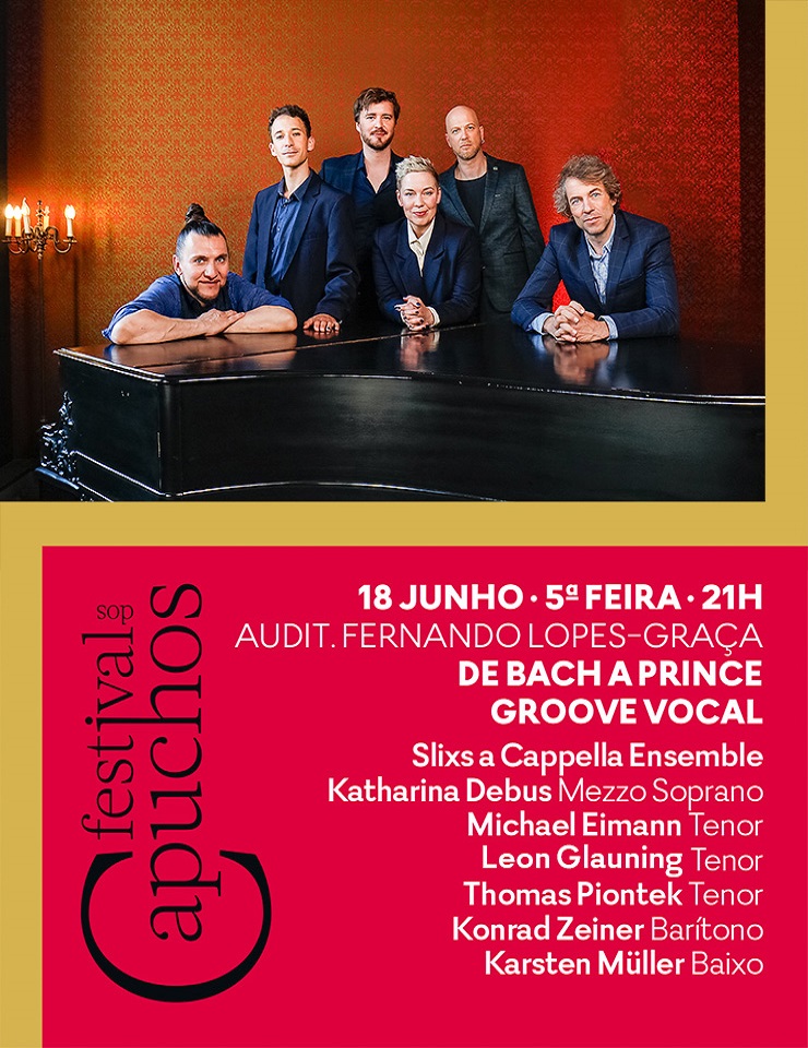 O Festival dos Capuchos 2026 apresenta a estreia em Portugal dos SLIXS, considerado um dos melhores grupos vocais da actualidade. Com uma fusão poderosa e ousada de música clássica e pop, de jazz e músicas do mundo, os seis virtuosos cantores que compõem os SLIXS têm vindo a entusiasmar públicos em concertos por toda a Europa e Ásia. Explorando ao máximo o potencial da voz humana, a sua inventividade é surpreendente e o seu subtil sentido de groove é absolutamente contagiante. A excelência artística e o espírito inovador dos SLIXS foram distinguidos por três vezes com o CARA (Contemporary A Cappella Recording Award) - o mais prestigiado prémio internacional da música vocal: Melhor Canção Jazz do Ano (2008), Melhor Canção Folk/World do Ano (2013) e Melhor Canção Clássica do Ano (2019).