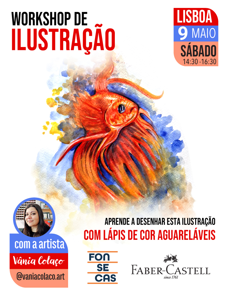 Uma oportunidade única de aprender algumas das técnicas utilizadas pela artista enquanto desenha a ilustração presente no cartaz! Não é necessário levar material. Terá tudo à sua disposição! Os mais desejados materiais Faber-Castell vão estar à disposição dos formandos! E no final do workshop, uma surpresa! 1 Voucher Faber-Castell! Ficamos à sua espera para 2h de partilha artística e muita criatividade!
